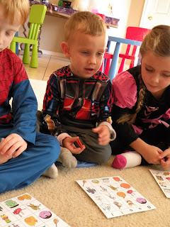 On the Friday before Halloween, Cameron's preschool class had a party. Luke, Owen and I went to help and I took a couple of pictures. They did all sorts of Halloween activities, decorating cookies, killing the monsters (popping balloons), Halloween bingo, pin the nose on the pumpkin, and ghost, ghost, boo (duck, duck, goose). Luke also got to join in on the fun. Cameron has such a great teacher, she is amazing with the kids and they have so much fun. Cameron just loves Ms. Tamra and going to preschool.
